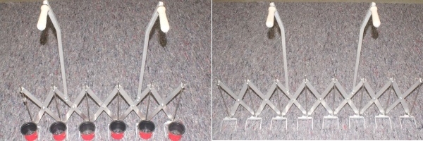 | Die Töpfe lassen sich auf jeden beliebigen Abstand auseinander ziehen, „Mitte, Mitte“ bis zu 65 cm. |