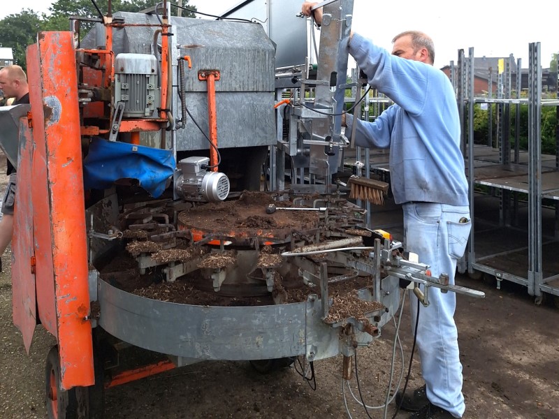 | Ein neues Topfmagazin mit Bandspeicher, dadurch kann man die Maschine schneller umstellen was die Arbeit erleichtert. Der Topfvorrat wird größer. |