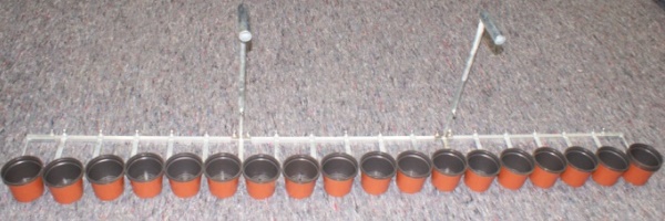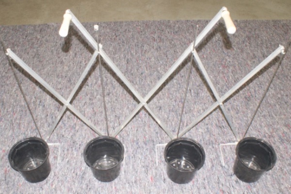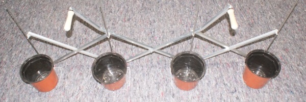 | Die Töpfe lassen sich auf jeden beliebigen Abstand auseinander ziehen, „Mitte, Mitte“ bis zu 65 cm. |
